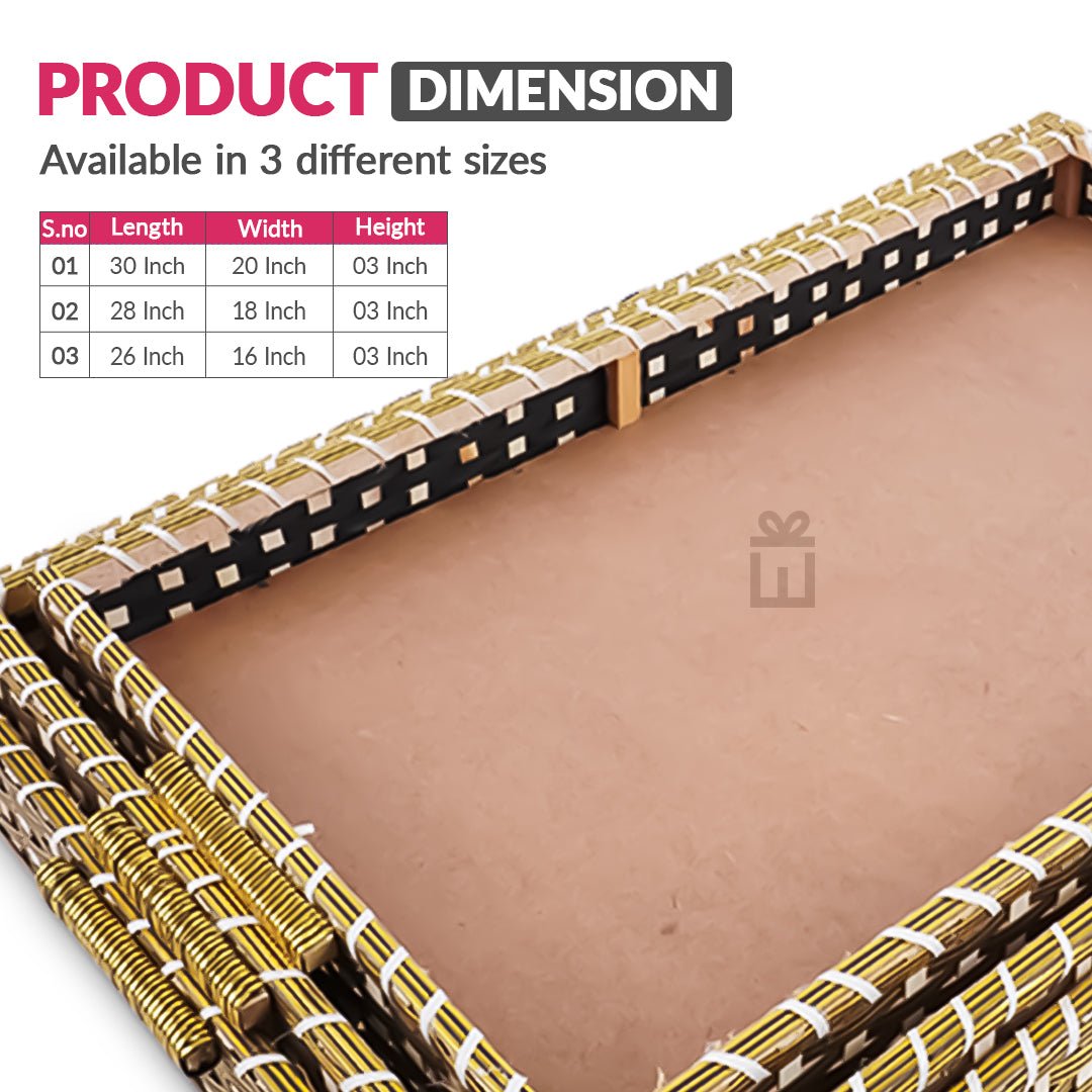 This set of handcrafted rectangle cane trays is ideal for weddings, events, and festive gifting. Whether you’re presenting sweets, giveaways, or decorative items, these trays offer a natural, handcrafted look that complements both traditional and contemporary setups.
