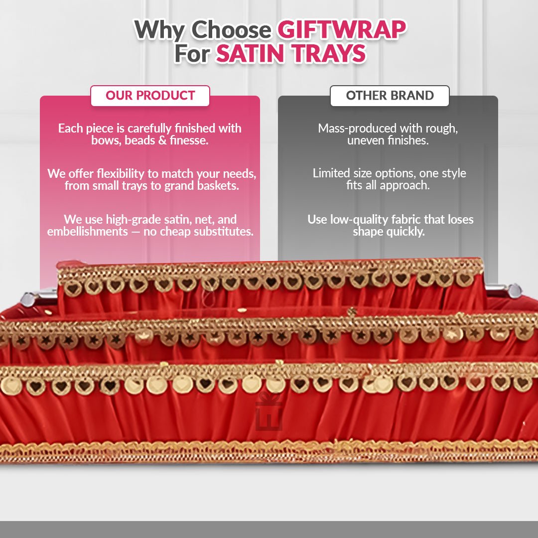 Make every gift look extra special with this beautifully crafted Satin Tray Set, designed specifically for weddings, engagements, and festive gifting. Covered in soft satin fabric with a graceful finish, these trays are perfect for presenting sweets, jewelry, return gifts, wedding favors, or traditional items in style.
