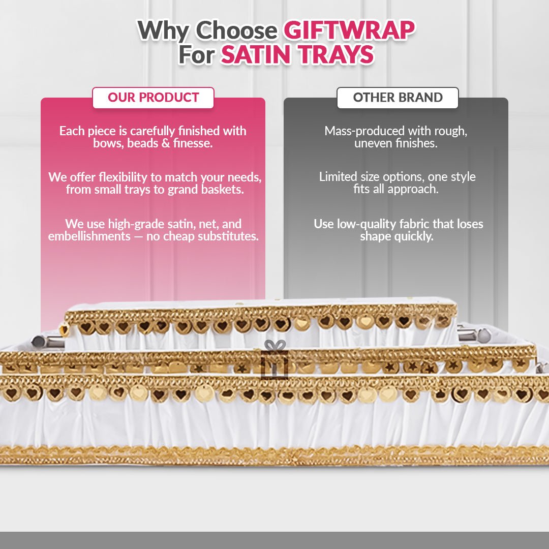 Make every gift look extra special with this beautifully crafted Satin Tray Set, designed specifically for weddings, engagements, and festive gifting. Covered in soft satin fabric with a graceful finish, these trays are perfect for presenting sweets, jewelry, return gifts, wedding favors, or traditional items in style.