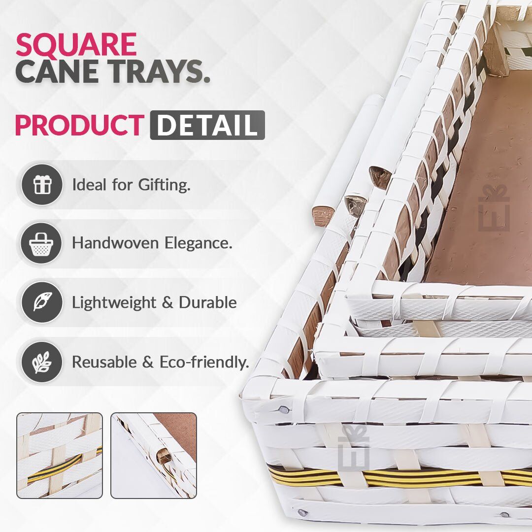 Set of 3 White Rectangle Wedding Cane Trays – Perfect for Gifting & Wedding Decor