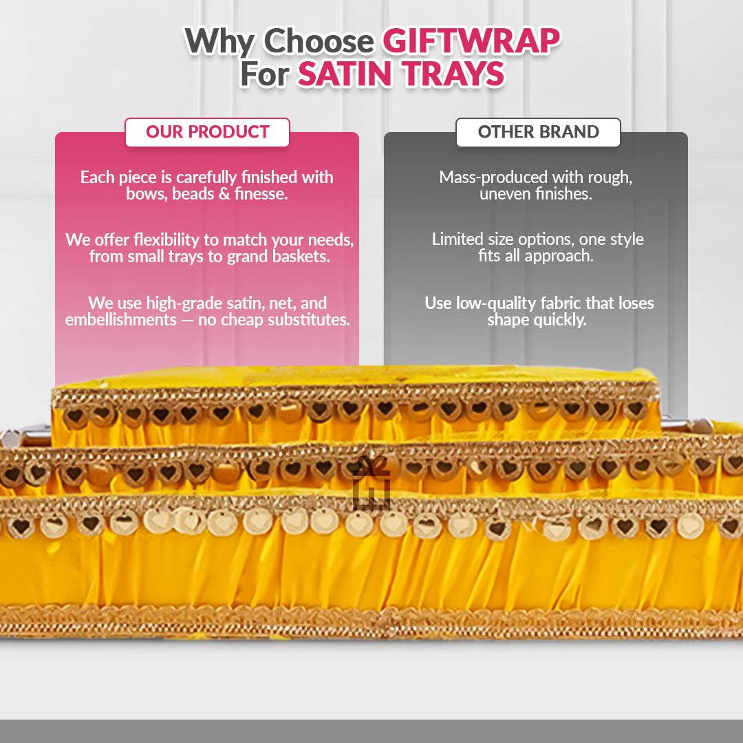 Make every gift look extra special with this beautifully crafted Satin Tray Set, designed specifically for weddings, engagements, and festive gifting. Covered in soft satin fabric with a graceful finish, these trays are perfect for presenting sweets, jewelry, return gifts, wedding favors, or traditional items in style.