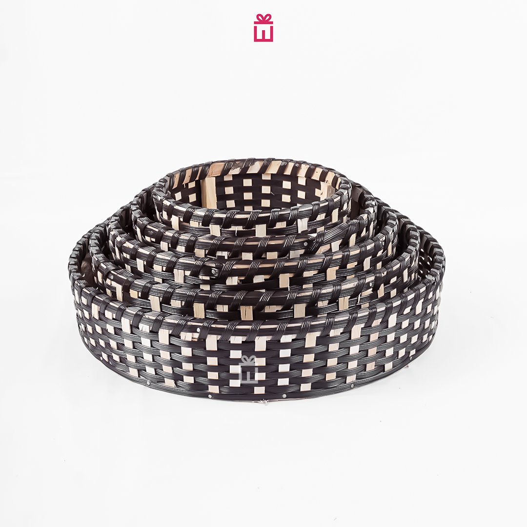 Set of 5 – Round Cane Trays – Brown & White Handwoven Serving and Gifting Trays