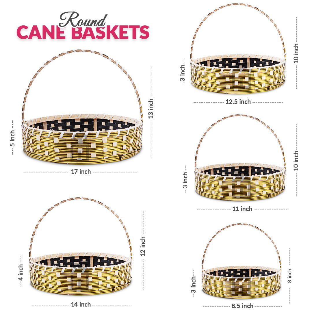 Add a touch of rustic charm and elegance to your special occasions with this beautifully crafted set of 5 round white cane baskets. Made from high-quality natural cane and finished in a crisp Silver color, these versatile baskets are perfect for: