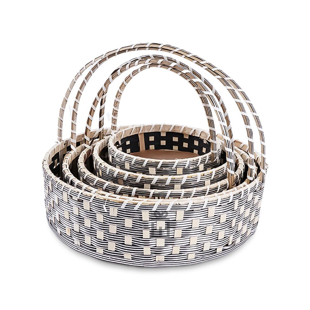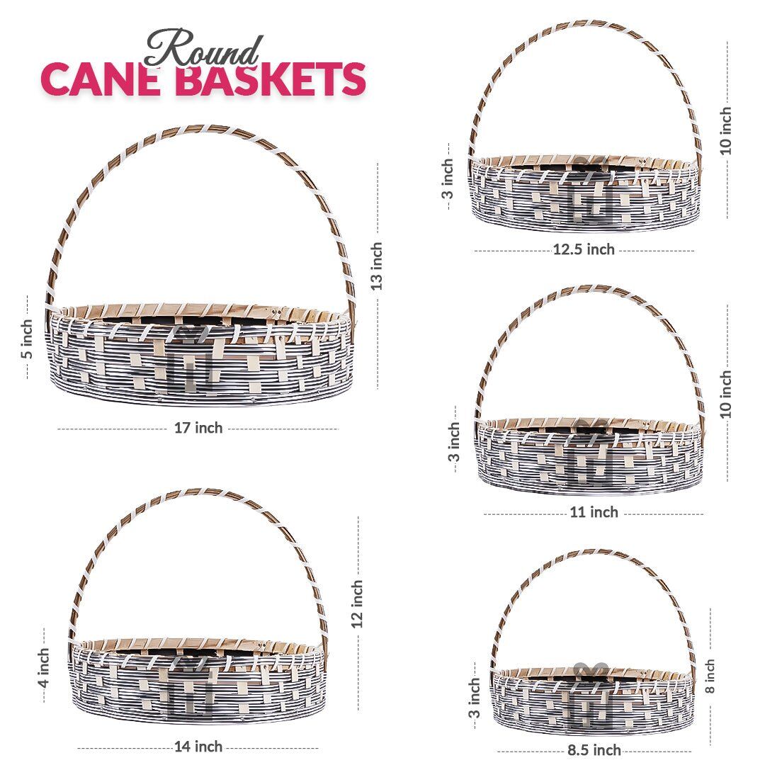 Add a touch of rustic charm and elegance to your special occasions with this beautifully crafted set of 5 round white cane baskets. Made from high-quality natural cane and finished in a crisp Silver color, these versatile baskets are perfect for: