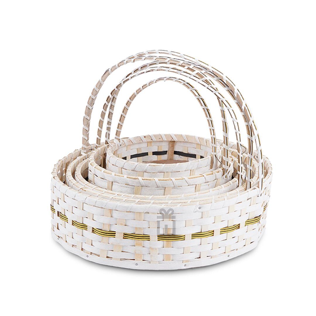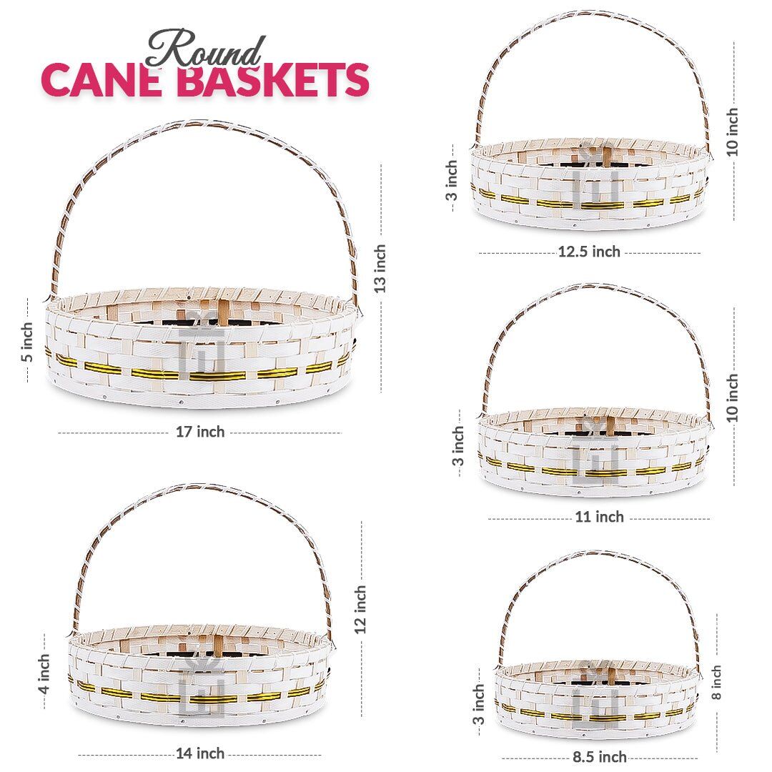 Add a touch of rustic charm and elegance to your special occasions with this beautifully crafted set of 5 round white cane baskets. Made from high-quality natural cane and finished in a crisp Silver color, these versatile baskets are perfect for: